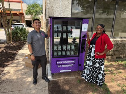 Thanks to Travis County initiatives, free naloxone is now available at Central Health and CommUnityCare clinic locations. Central Health has both indoor and outdoor Naloxone Distribution Units that provide people with a way to access this life-saving medication for free without stigma or the need for a prescription.